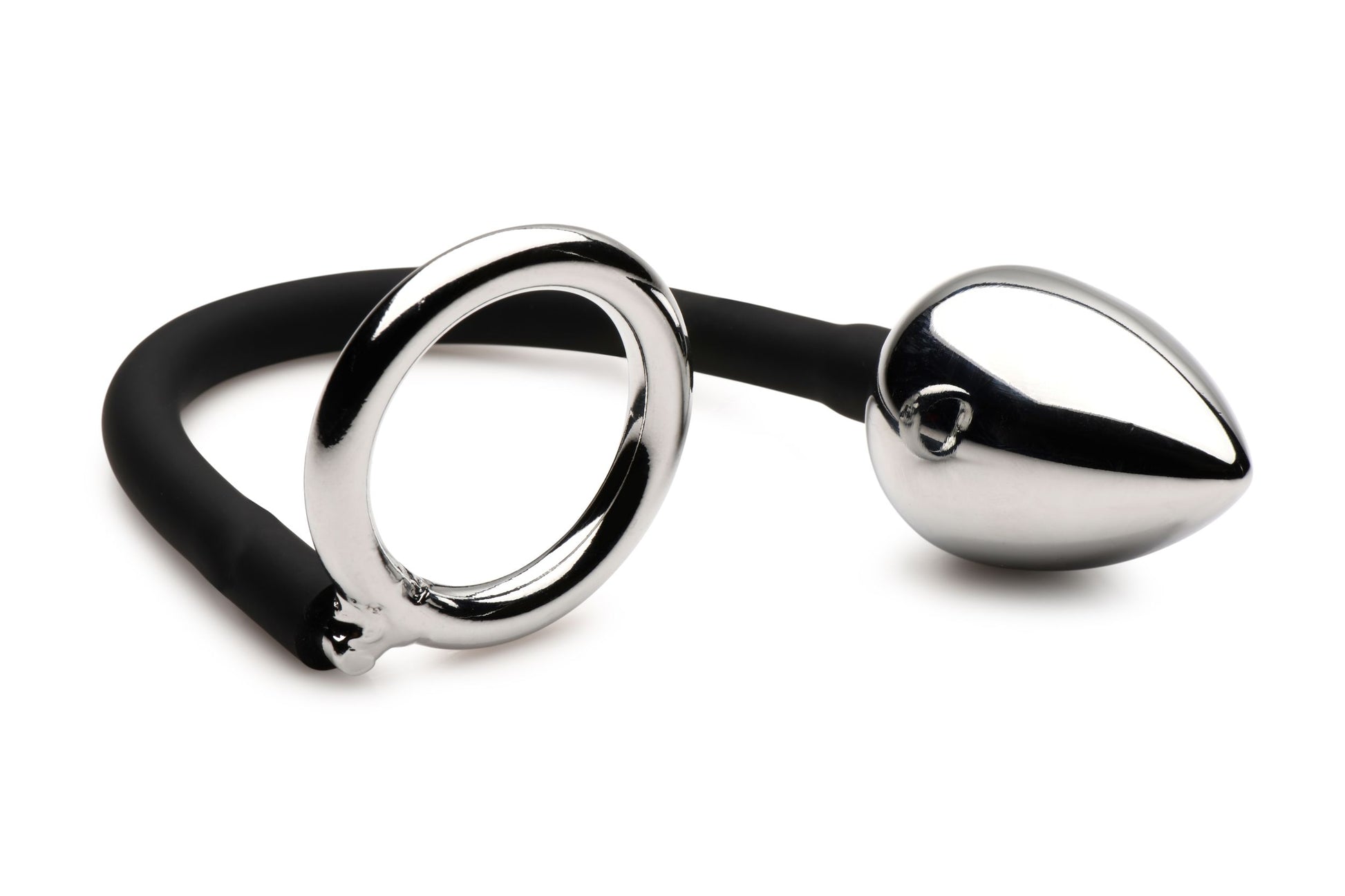 XR Brands - Tug + Plug Cock & Ball Ring met Anaalplug - Zwart&Zilver